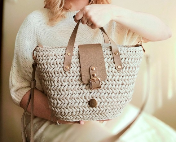 Ręcznie wykonany splot nadaje torbie wyjątkową strukturę, a skórzane detale podkreślają jej ponadczasowy charakter. To model, który odnajdzie się zarówno w codziennym rytmie, jak i w tych spokojniejszych chwilach tylko dla siebie.